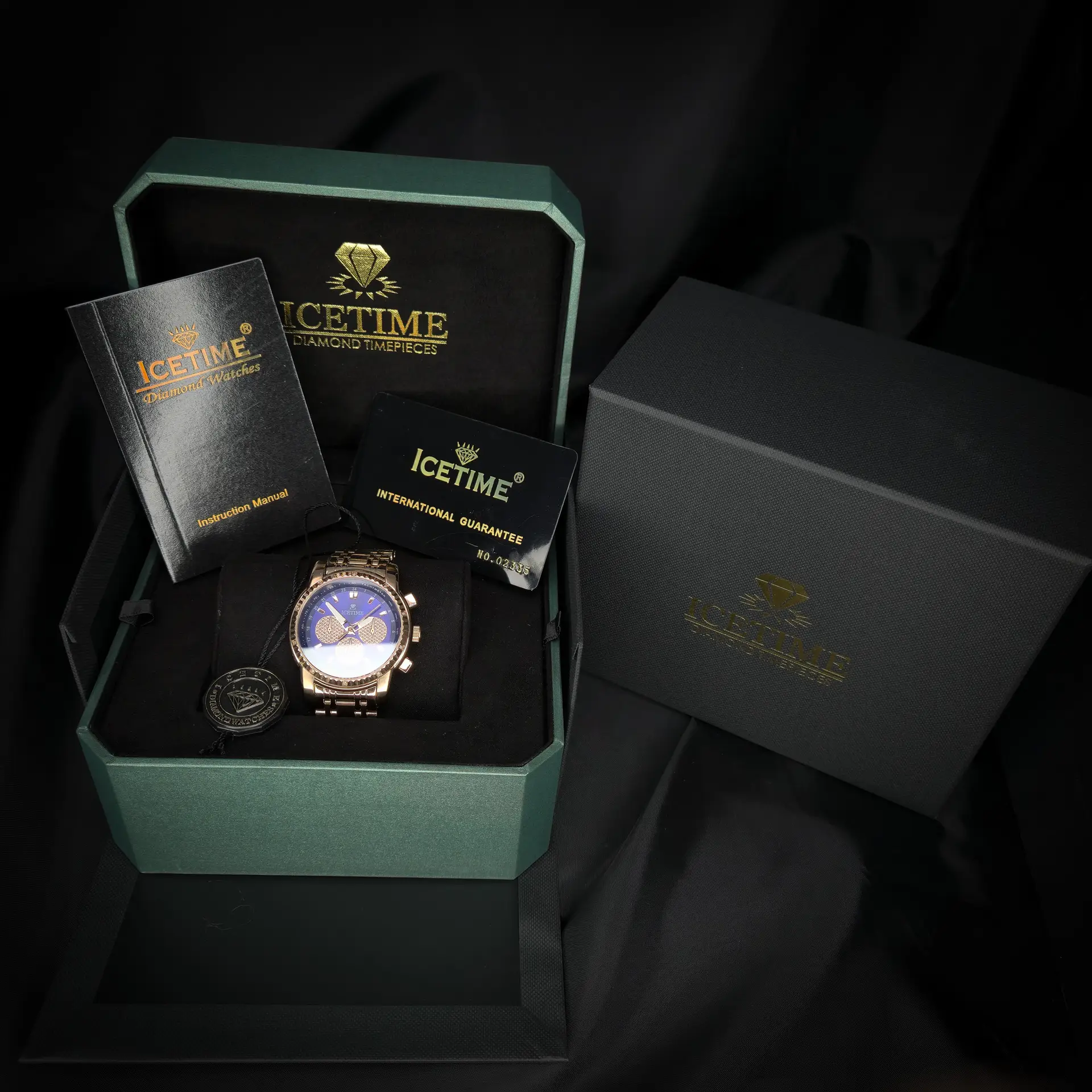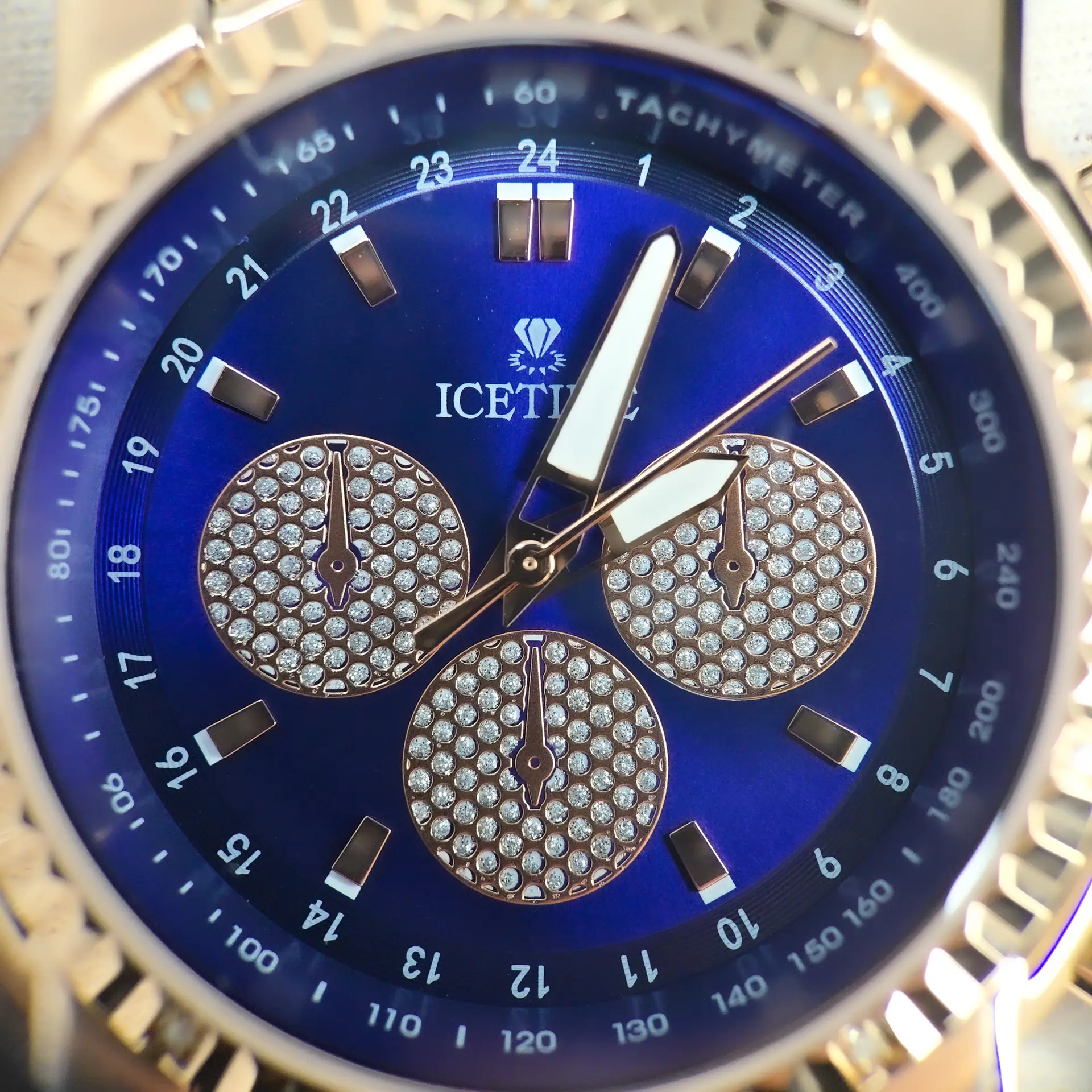 New IceTime 40 mm Men’s Rose Gold Blue Dial Watch Full Set Box & Papers