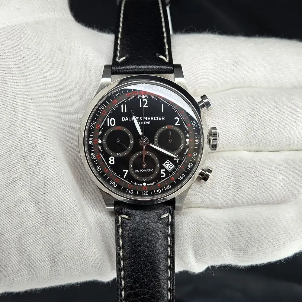 The Baume & Mercier Capeland MOA10001 is the kind of timepiece that whispers luxury rather than shouting it — the mark of a watch built for collectors who appreciate refinement, heritage, and mechanical integrity. This 42 mm chronograph blends Swiss precision with a design language inspired by 1940s timing instruments, creating a piece that feels both timeless and unmistakably upscale.