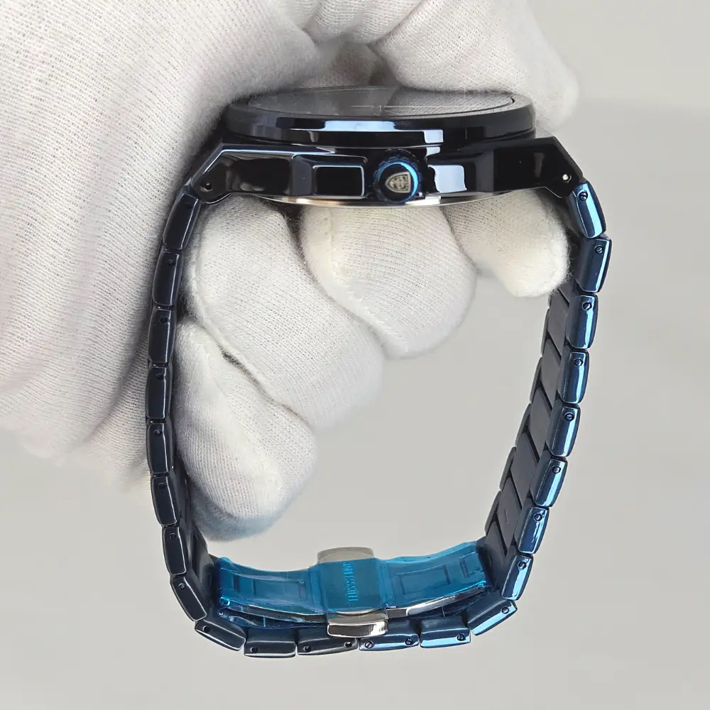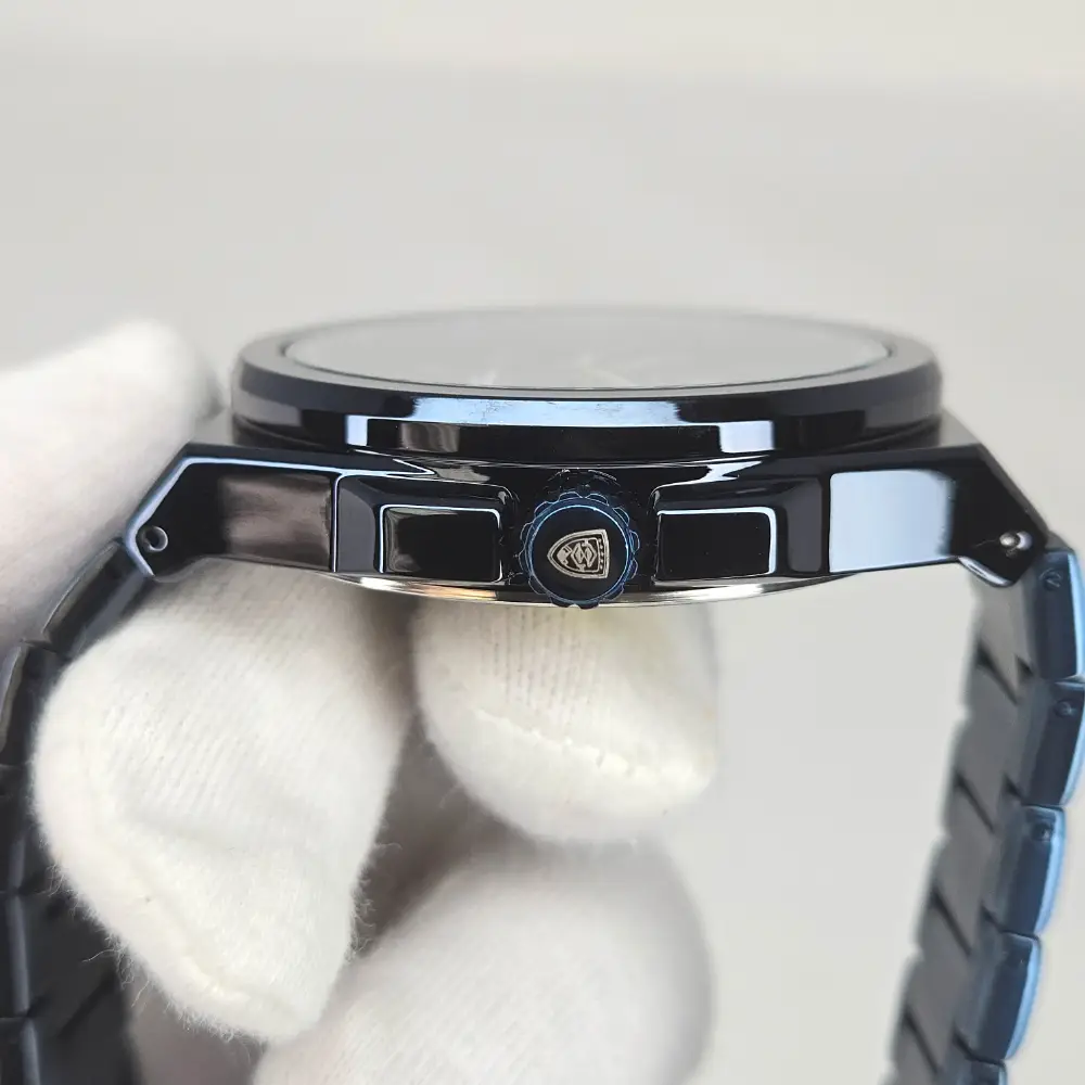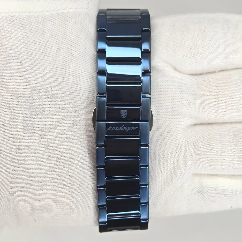 Bold, modern, and effortlessly refined, this POEDAGAR timepiece delivers an eye-catching luxury-inspired look at an accessible value. Crafted with a striking black stainless steel case and matching bracelet, it features a richly textured dial with luminous hands and markers, a convenient day-date display, and a clean numberless design that gives it a sleek, contemporary presence on the wrist. Powered by a reliable quartz movement, this 44mm watch offers everyday practicality with 3Bar water resistance, a hardlex crystal, and a push-button hidden clasp for a secure, comfortable fit. For buyers looking for strong visual presence, versatile daily wear, and standout style from a rising watch brand, this POEDAGAR is a sharp and affordable addition to any collection.